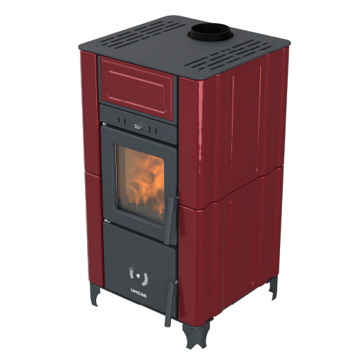 Stufa a legna ventilata, design classico, rivestimento in maiolica di grande pregio, porta in ghisa, focolare in ghisa e refrattario, dotata di ventilatore disattivabile.